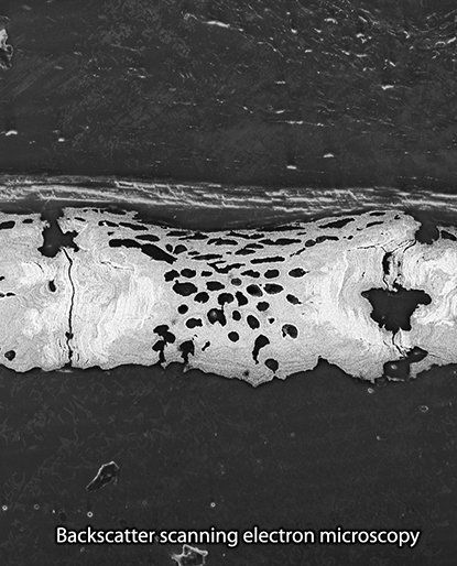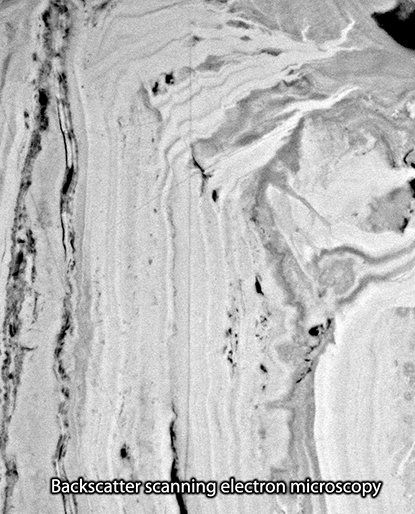 This and other anatomical features were described in Seidel et al. 2016 and are common among species of all major elasmobranch groups despite the large variation in tesseral shape and size. Most of them relate to local variations in grey values in backscatter images, which are variations in mineral density. See some backscatter electron images below or have a look at our publication (Seidel et al., 2016. Ultrastructural and developmental features of the tessellated endoskeleton of elasmobranchs (sharks and rays). Journal of Anatomy 229.5: 681-702.) where we discuss hypotheses about how these features develop, and compare them with other vertebrate skeletal tissue types and their growth mechanisms.