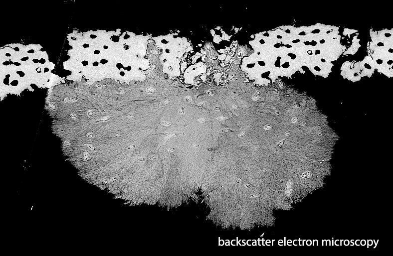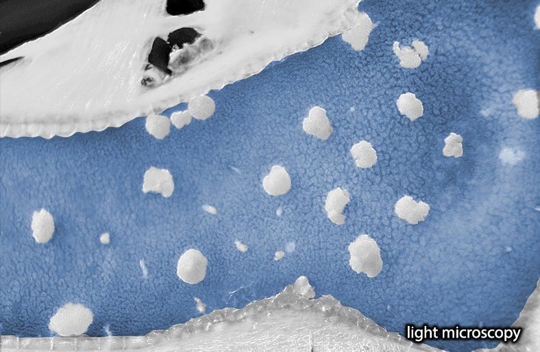 Studying tessellated cartilage in various elasmobranchs species, we noticed in many sections ectopic (located away from normal position) mineralizations. In Seidel et al. 2017 we describe an aberrant type of mineralized elasmobranch skeletal tissue called endophytic masses (EPMs), which grow into the uncalcified cartilage of the skeleton, but exhibit a strikingly different morphology compared to tesserae and other elasmobranch calcified tissues